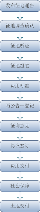1、 两公告一登记。土地储备机构在征地方案、农转用报批方案获得批准后,进行“两公告一登记”,即公告征地补偿方案;公告征地安置方案;对征地及房屋拆迁情况进行登记。