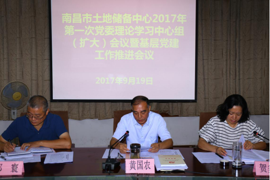 9月19日上午,365betasia备用网址召开2017年第一次党委理论学习中心组(扩大)会议暨基层党建工作推进会议。会议由市国土局党组成员,土地储备中心党委书记、主任黄国农主持,中心党委委员、副主任贺多多、邓寰、王磊、周凯出席了会议,各分中心、各处室科级干部,各党支部委员列席了会议。