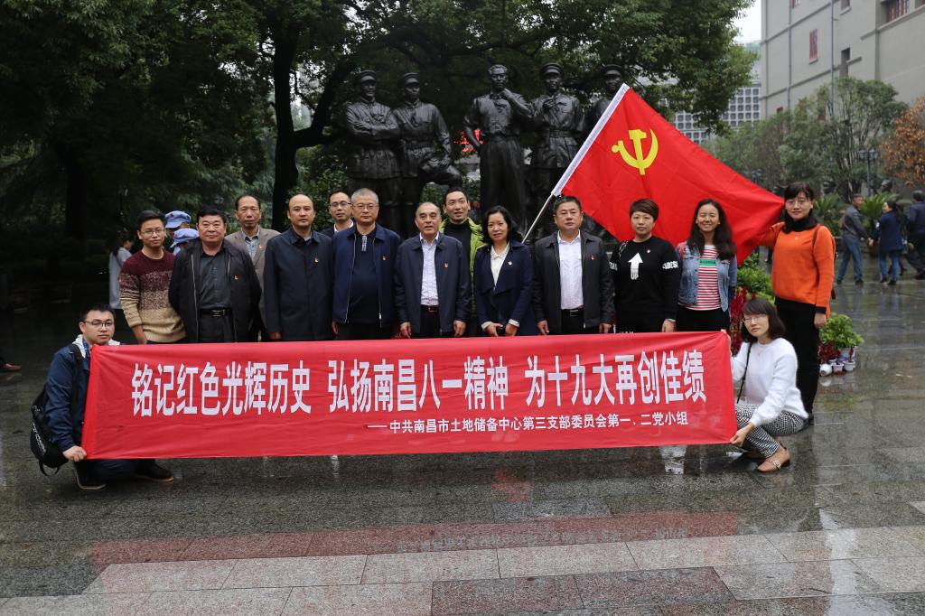 寒风萧萧,细雨丝丝。2017年11月10日下午,中共365betasia备用网址第三党支部第一、二党小组全体党员冒着风雨来到南昌八一起义纪念馆,开展以“铭记红色光辉历史 弘扬南昌八一精神 庆十九大再创佳绩”为主题的党小组活动,市国土资源局党组成员、市土地储备中心党委书记、主任黄国农,中心党委委员、副主任贺多多、邓寰、王磊、周凯参加了本次活动。
